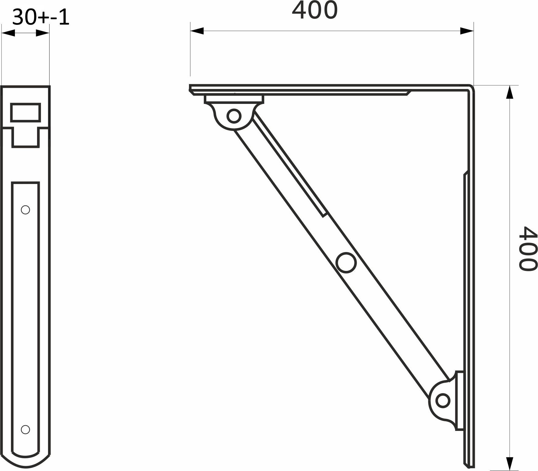 Полкодержатель складной консольного типа применяется для монтажа полки на стену. Часто применяется в маленьких помещениях для экономии места. Можно использовать для изготовления складного столика. Материал - сталь. Максимальная нагрузка на пару 70кг.