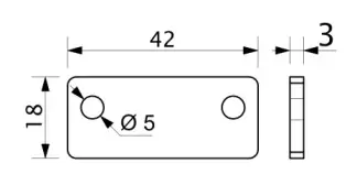Металлическая пластина размером 19мм х 42мм и толщиной 3 мм имеет два монтажных отверстия. Данная пластина служит для надежного соединения двух деталей.