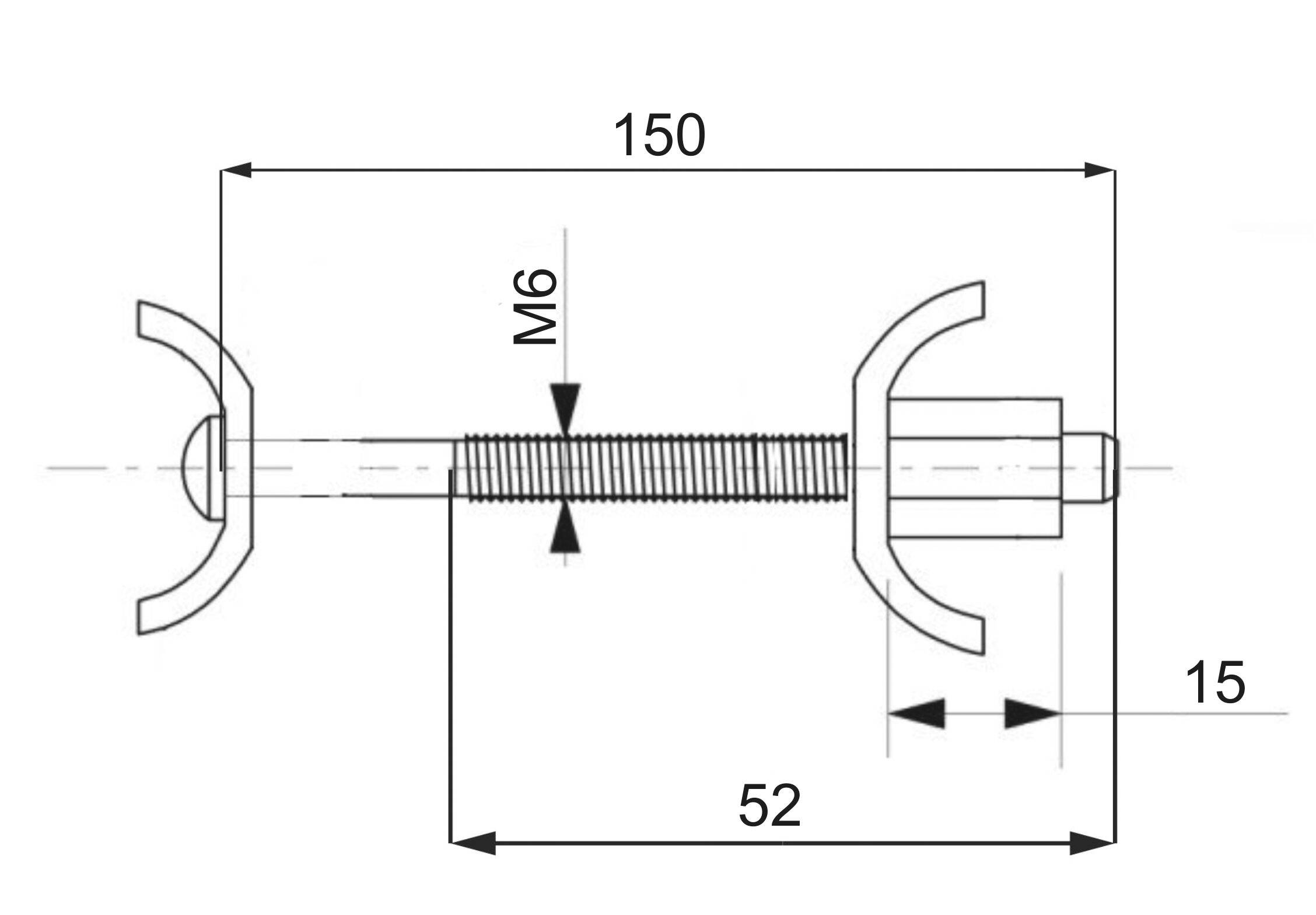 Она состоит из двух С-образных шайб, шпильки с метрической резьбой М6 и удлиненной шестигранной гайки.