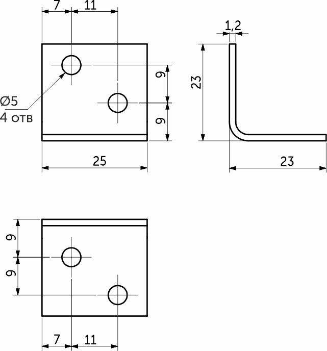 Металлические уголки бывают с одним отверстием в полке, двумя или более, различных форм и размеров (широкие тип FSC-01 и узкие тип FCS-04), специальных форм тип FSC-03 и FCC-06, с ребрами жесткости или без, различных толщин от 1,0 мм до 2,0 мм. По длине полки в мебельном производстве чаще всего применяются металлические уголки от 20 мм до 80 мм, по ширине полки от 15 мм до 45 мм Чаще всего металлические уголки встречаются в белом и желтом цинке.