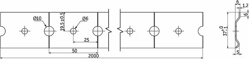 Монтажная шина (рейка) для навесов предназначен для крепления ящиков верхнего яруса к стене с помощью различных типов навесов. Стандартная длина шины 2000 мм, но также применяются шины длиной 60, 80 и 100 мм. Шину можно монтировать как целиком, так и разрезая по необходимым размерам. Толщина металла у данной шины может быть 1.0, 1.2, 1.5 и 2,0 мм. Код 70 344 - облегченная