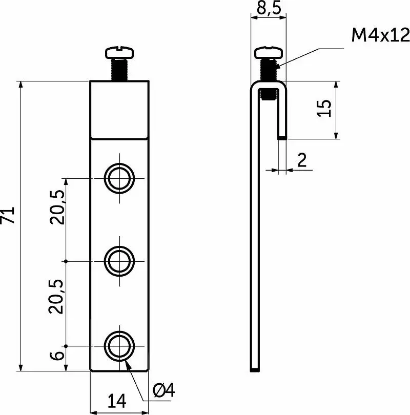 Кронштейн INDAUX разработан для крепления лёгких шкафных модулей на монтажную шину. Он фиксируется на торцевой стороне корпуса тремя саморезами, после чего модуль легко навешивается на установленную планку.