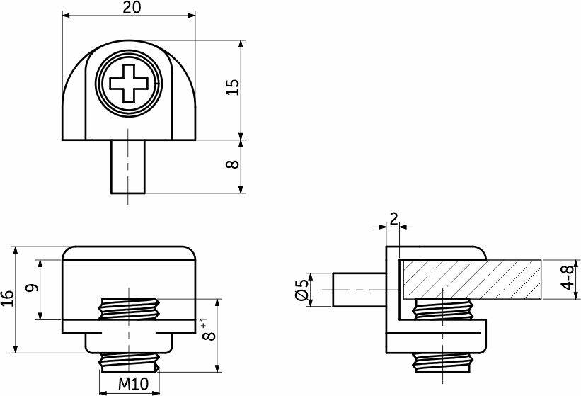 Полкодержатель для стекла регулируемый используется для монтажа стеклянных полок толщиной 6-9 мм