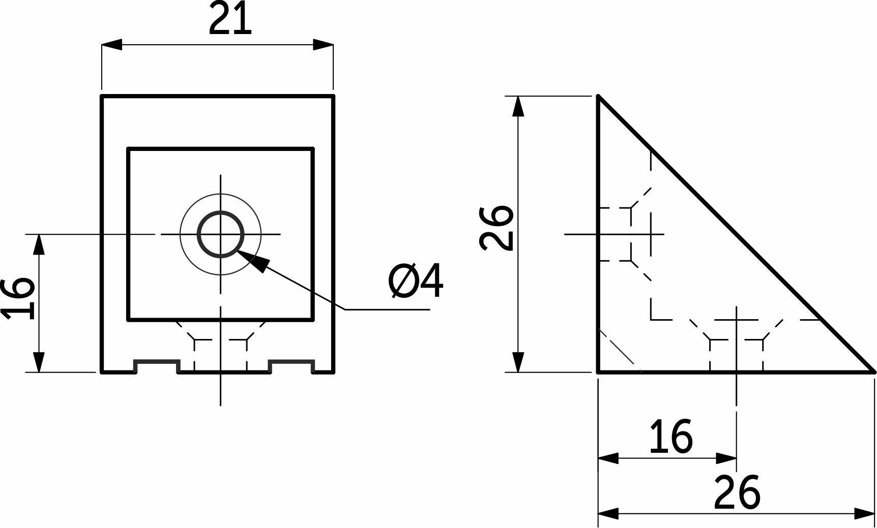 Один из видов одинарных пластиковых уголков (командорок), который имеет прикрепленную крышку. Данный уголок представлен в нескольких цветах, чтобы можно было подобрать к определенному цвету ДСП, и имеет треугольную форму. Данный вид соединения менее прочен, чем металлические уголки, но данные недостатки компенсируются низкой ценой и разнообразием цветов.