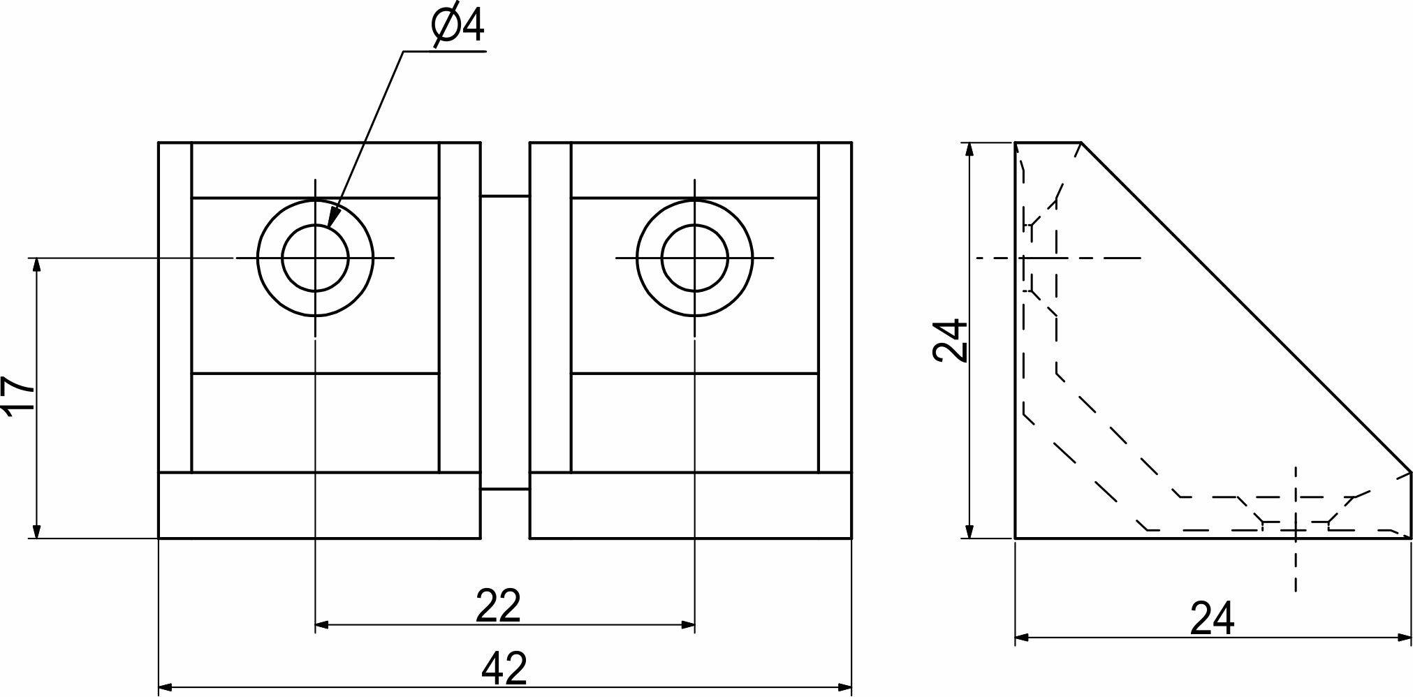 Уголок монтажный двойной - один из видов пластиковых уголков (командорок), который может иметь прикрепленную крышку либо поставляться с крышкой отдельно. Особенностью данного уголка является увеличенная ширина изделия и 2 монтажных отверстия в каждой полке, что обеспечивает большую площадь соприкасания крепежа и элемента мебели и дополнительную прочность. Данный уголок представлен в нескольких цветах, чтобы можно было подобрать к определенному цвету ДСП, и имеет треугольную форму.