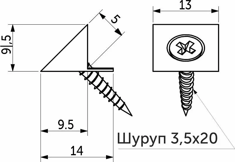 Фиксатор задней стенки ДВП служит для крепления ДВП к задней стенке корпуса ящика, в котором должен быть предварительно выфрезерован специальный паз для данного крепления. Данный вид соединения состоит из пластикового уголка специальной формы и самореза размером 3,5*20 (используется чаще всего) или 3,5*16. Фиксатор задней стенки ДВП может идти уже с предустановленным саморезом либо доукомплектовываться саморезами дополнительно.