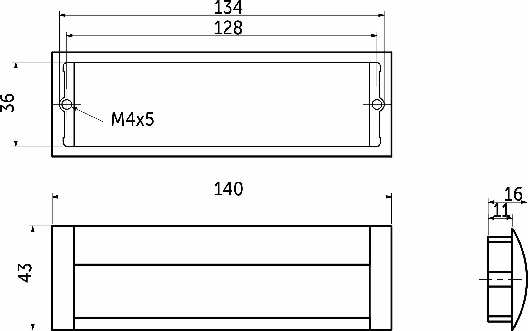 Ручка меб. врезная алюм. WPY 326 128 алюминий/хром AKS