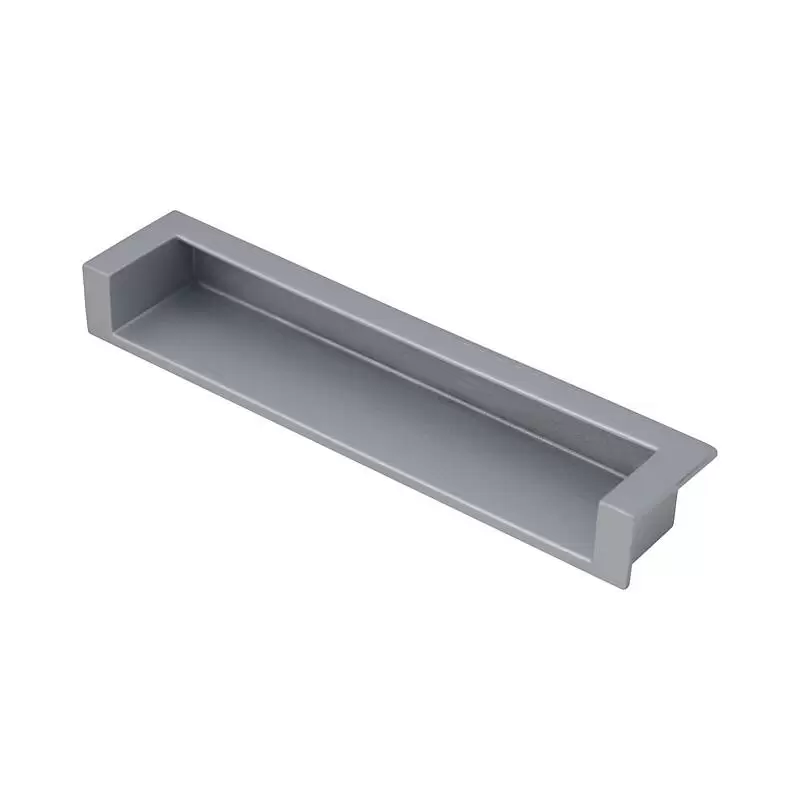 Врезная лаконичная ручка с прямыми линиями классического оттенка, которая не заберет на себя внимание от мебели.