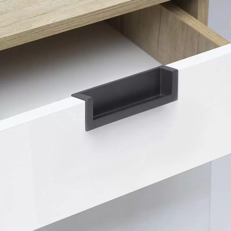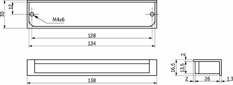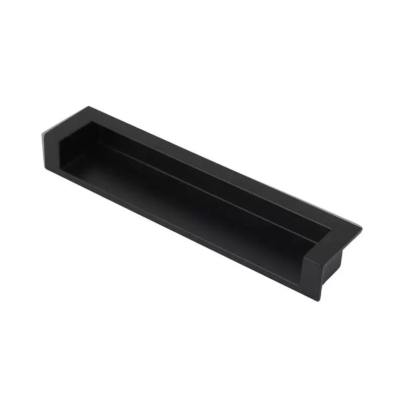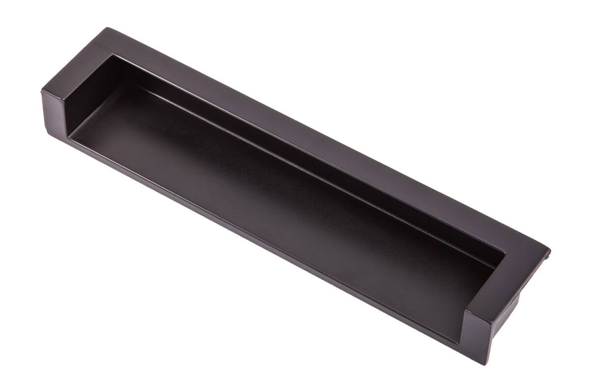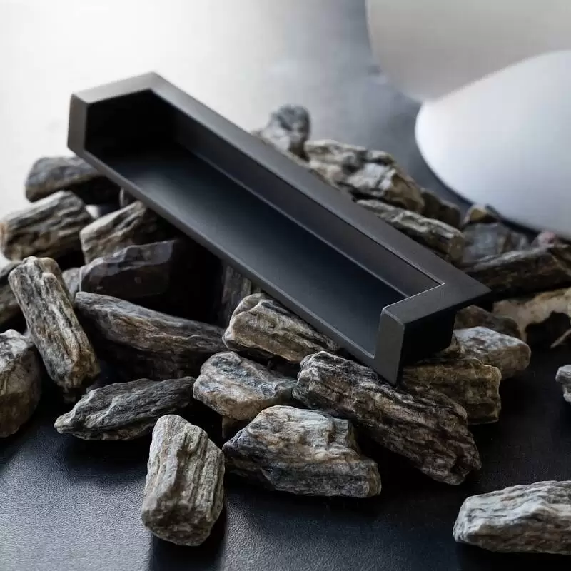 Врезная лаконичная ручка с прямыми линиями классического оттенка, которая не заберет на себя внимание от мебели.