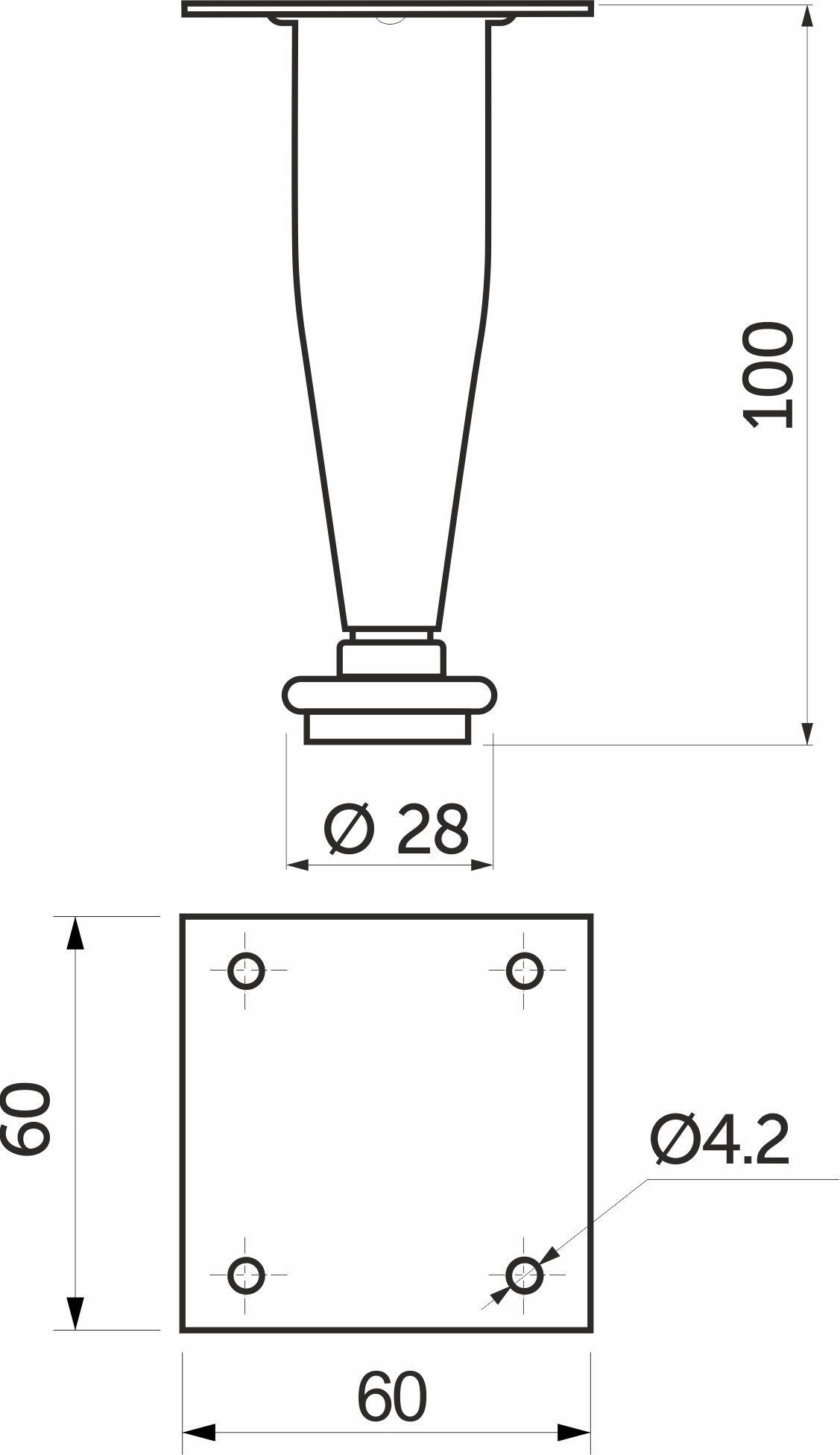 Опора мебельная металлическая. Применяется для крепления к различного рода мебели в качестве опорного и декоративного элемента. Высота - 100мм. Изготовлена из стали. Цвет хром. Рекомендуемая максимальная нагрузка на одну опору - 50кг.