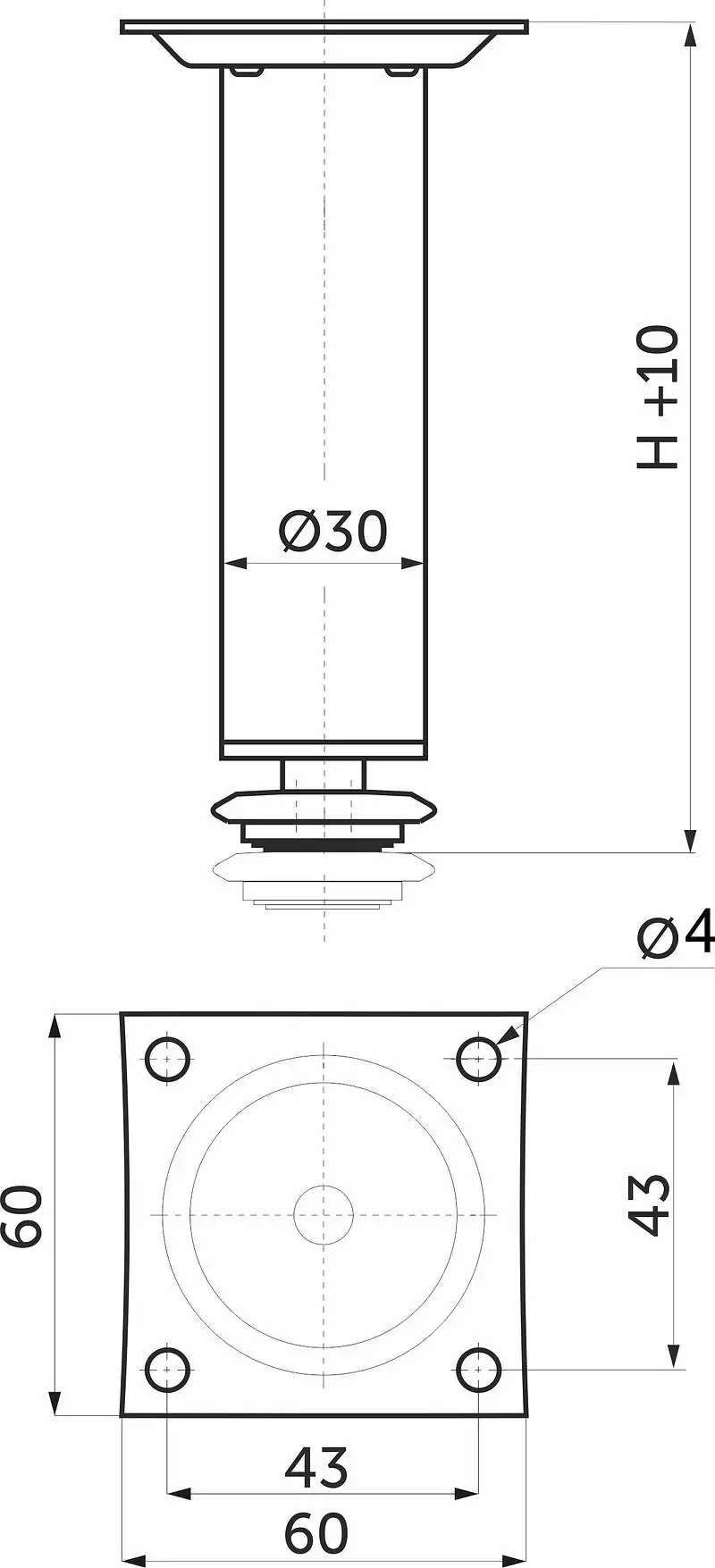 Опора мебельная металлическая с регулировкой. Применяется для крепления к различного рода мебели в качестве опорного и декоративного элемента.