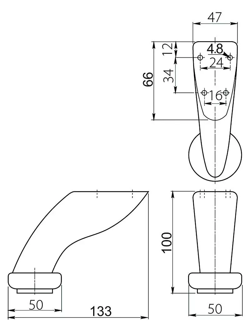 Опора мебельная металлическая. Применяется для крепления к различного рода мебели в качестве опорного и декоративного элемента. Высота 100мм. Изготовлена из стали. Цвет - хром. Рекомендуемая максимальная нагрузка на одну опору - 50кг.