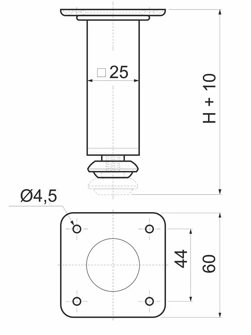 Опора мебельная металлическая с регулировкой. Применяется для крепления к различного рода мебели в качестве опорного и декоративного элемента.
