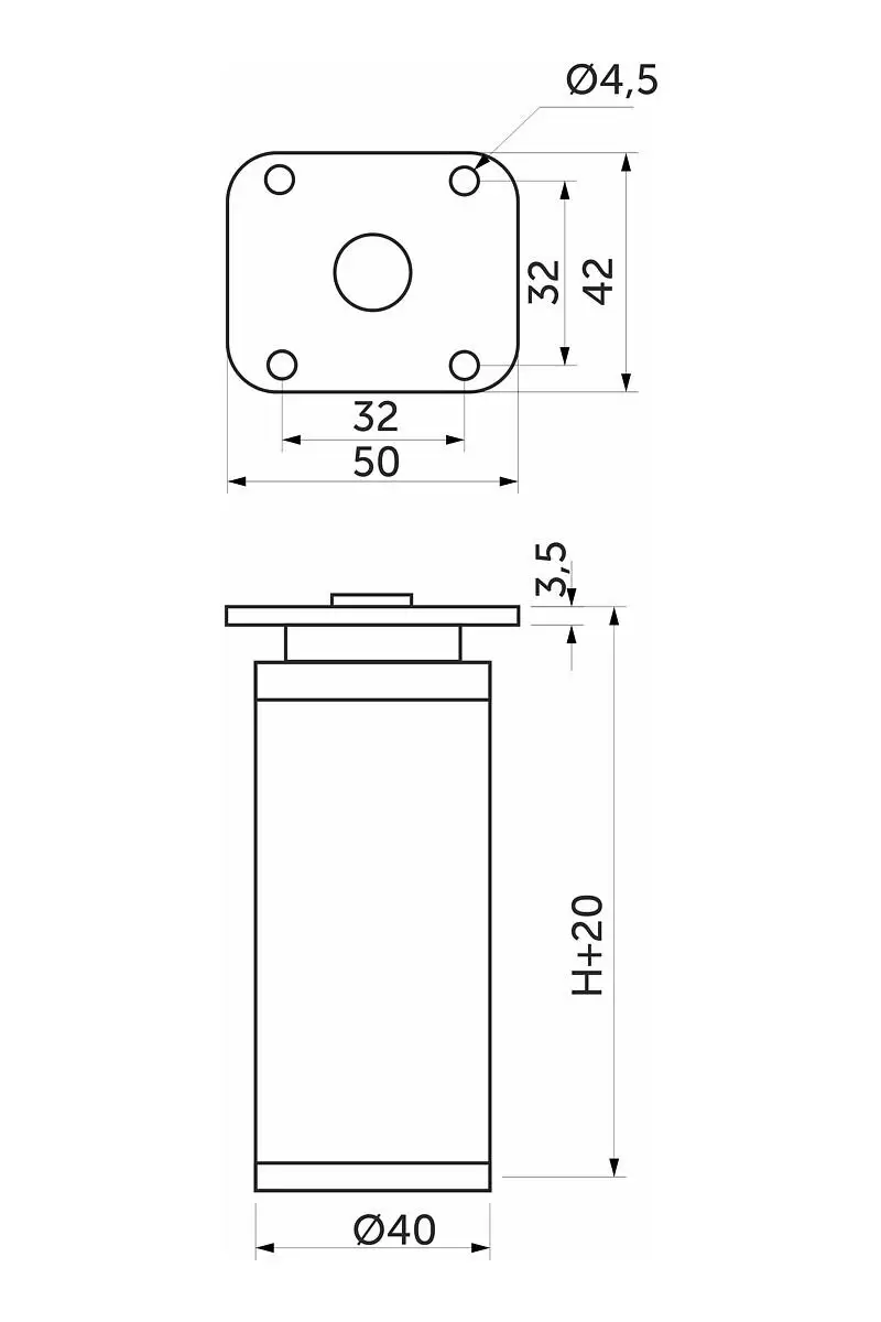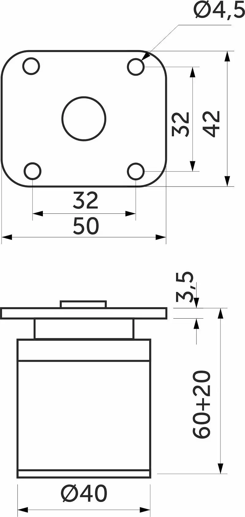 Высота опоры 60мм + 20мм.