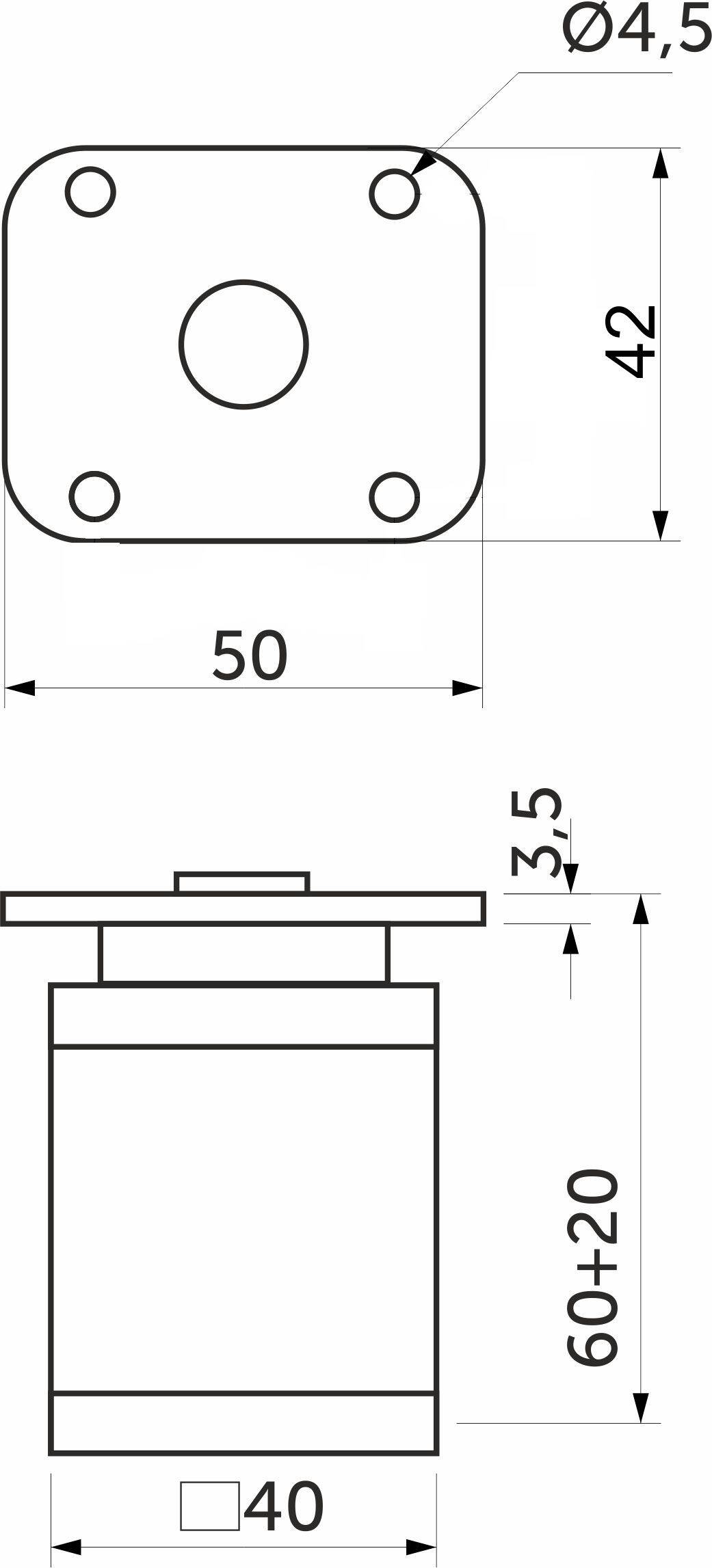 Опора мебельная регулируемая алюминиевая. Материал - алюминий и пластик. Цвет - черный. Высота 60мм+20мм. Рекомендуемая максимальная нагрузка на одну опору - 50кг.