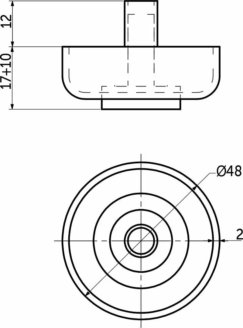 Опора мебельная регулируемая, предназначена для использования на корпусной и мягкой мебели. Цвет черный. Материал - пластик. Высота - 17мм, диаметр - 48мм. Рекомендуемая максимальная нагрузка на одну опору - 50кг.