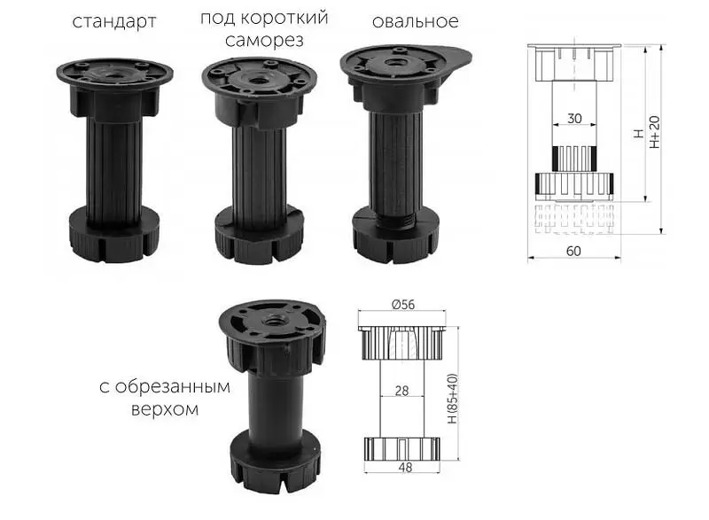 Нагрузка на опору - 190кг. Материал - полипропилен. Опора регулируется по высоте. К опоре подходит болт 106514.