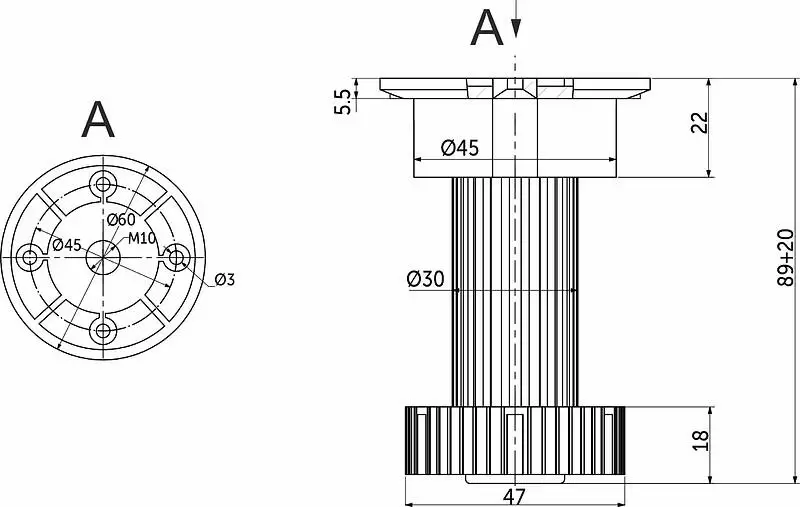 Нагрузка на опору - 90кг. Материал - полипропилен. Опора регулируется по высоте.