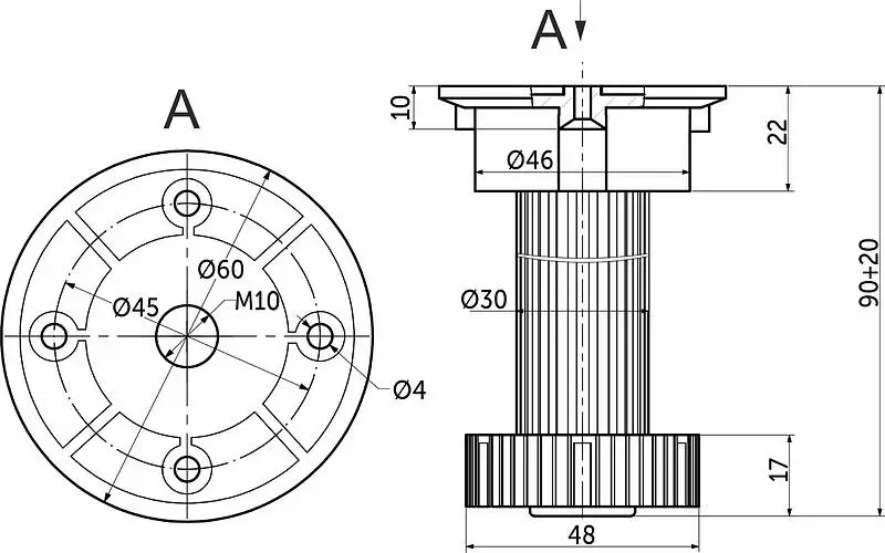 Нагрузка на опору - 100кг. Материал - полипропилен. Опора регулируется по высоте. К опоре подходит болт.