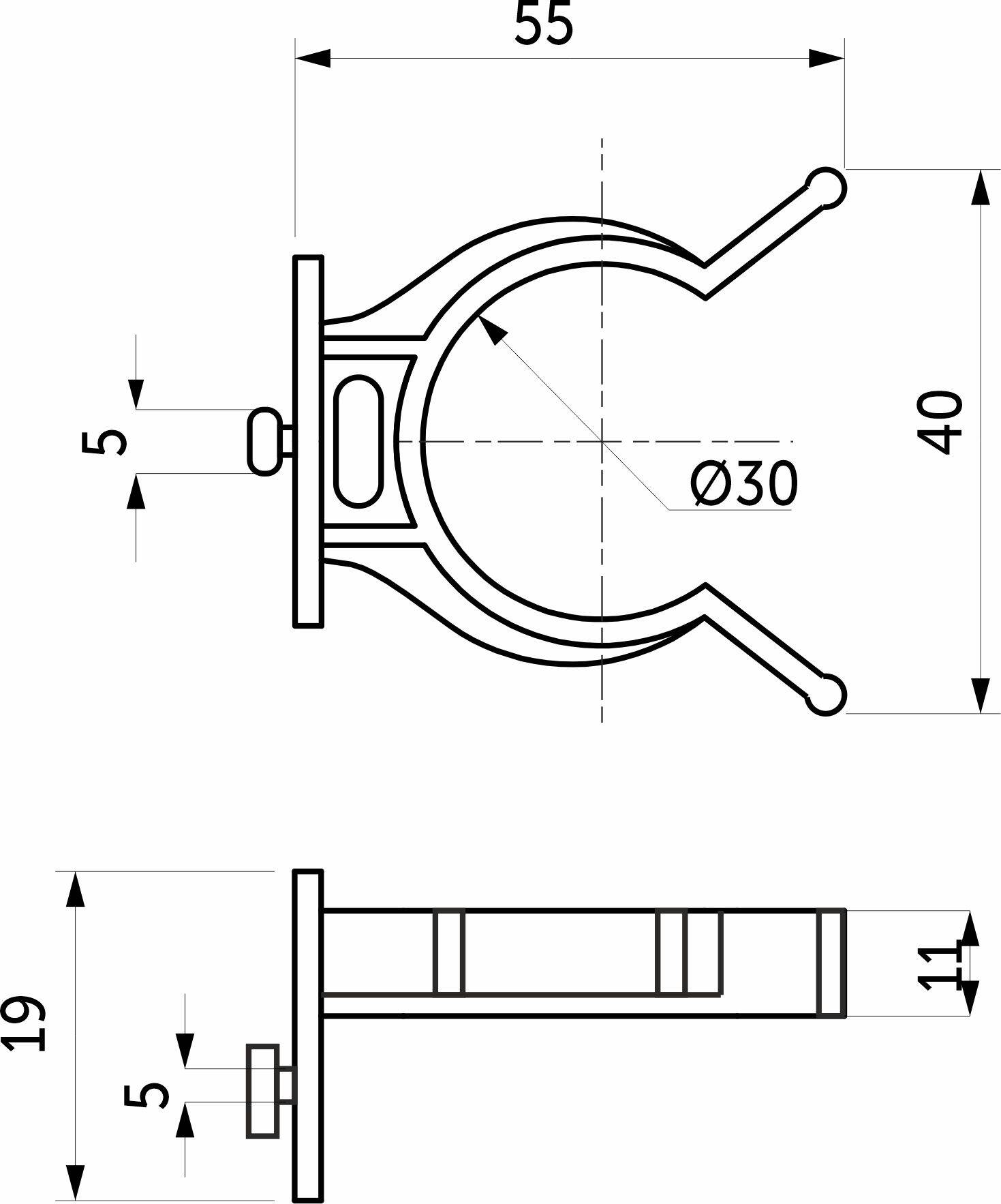 Крепление опоры кухонной универсальное с усом (к цоколю пластиковому AKS)