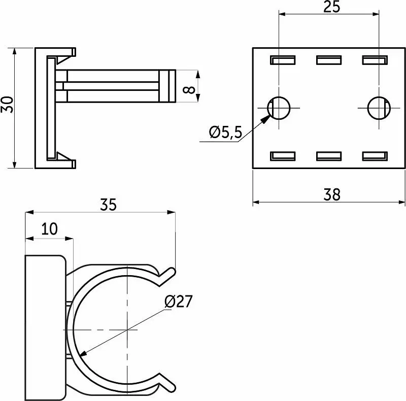 Крепление пластиковое универсальное, предназначено для крепления кухонного цоколя (пластик и ДСП) к опоре кухонной. Для крепления к цоколю используются саморезы.