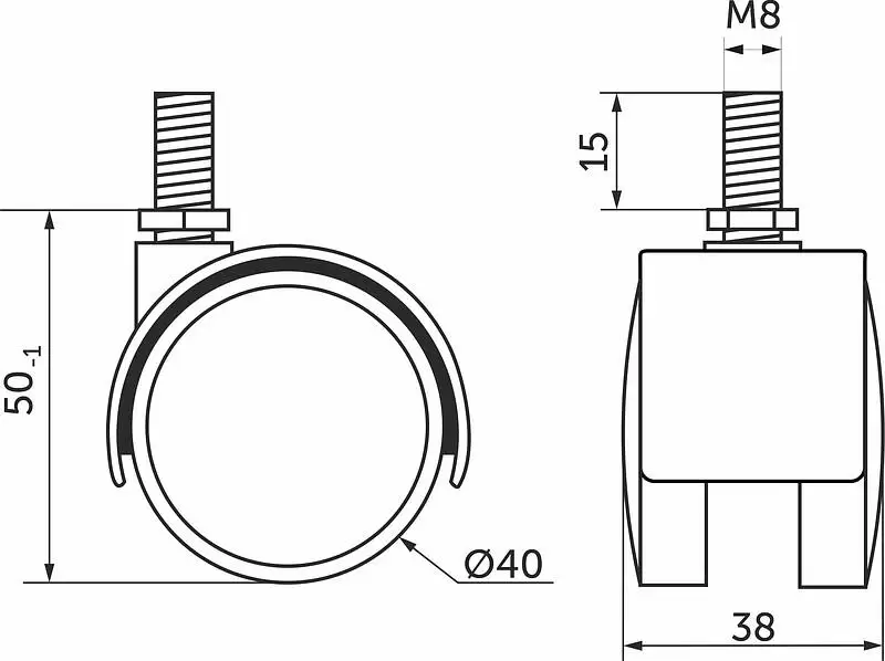 Колесо меб. пласт. d40 с винтом М8, черный AKS