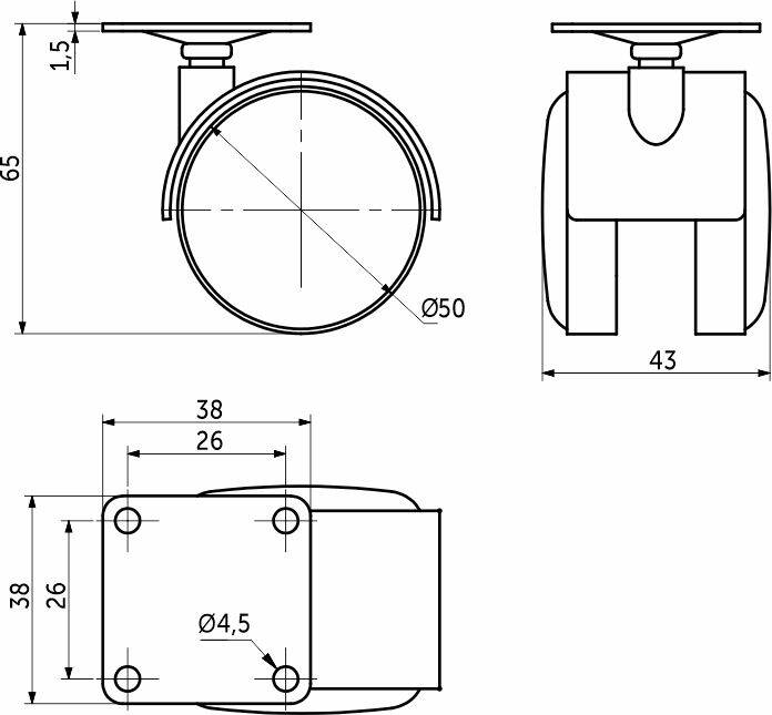 Колесо поворотное пластиковое на площадке. Рекомендуемая нагрузка на 1 колесо - до 15 кг