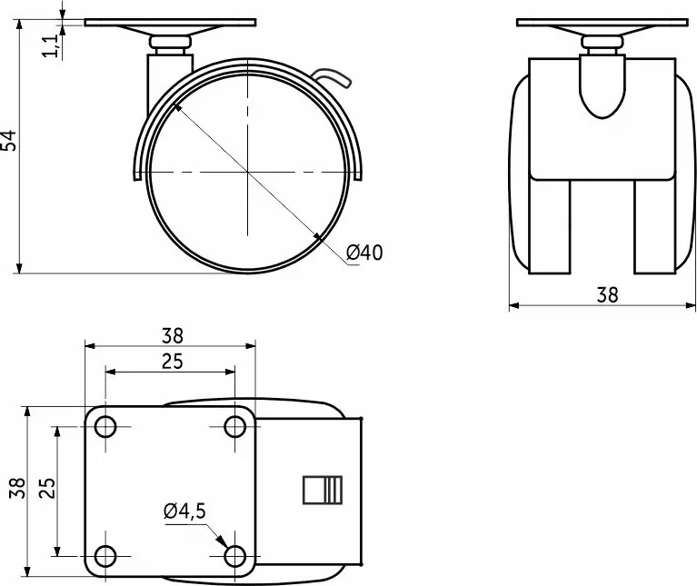 Серия бюджетных пластиковых колес для мебели.