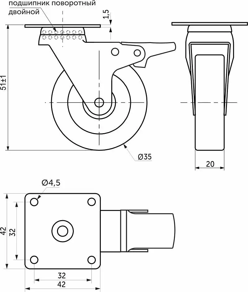 Рекомендованная статическая/динамическая нагрузка на 1 колесо: 35/25 кг.