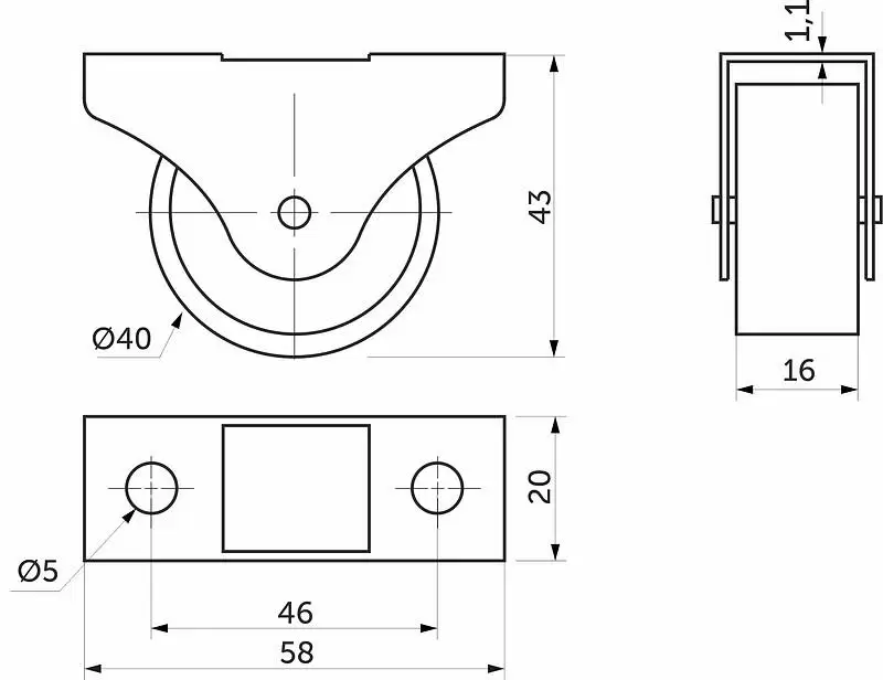 Ролик меб. c рез.ободом d40 h43 прямоходящий, серый РП