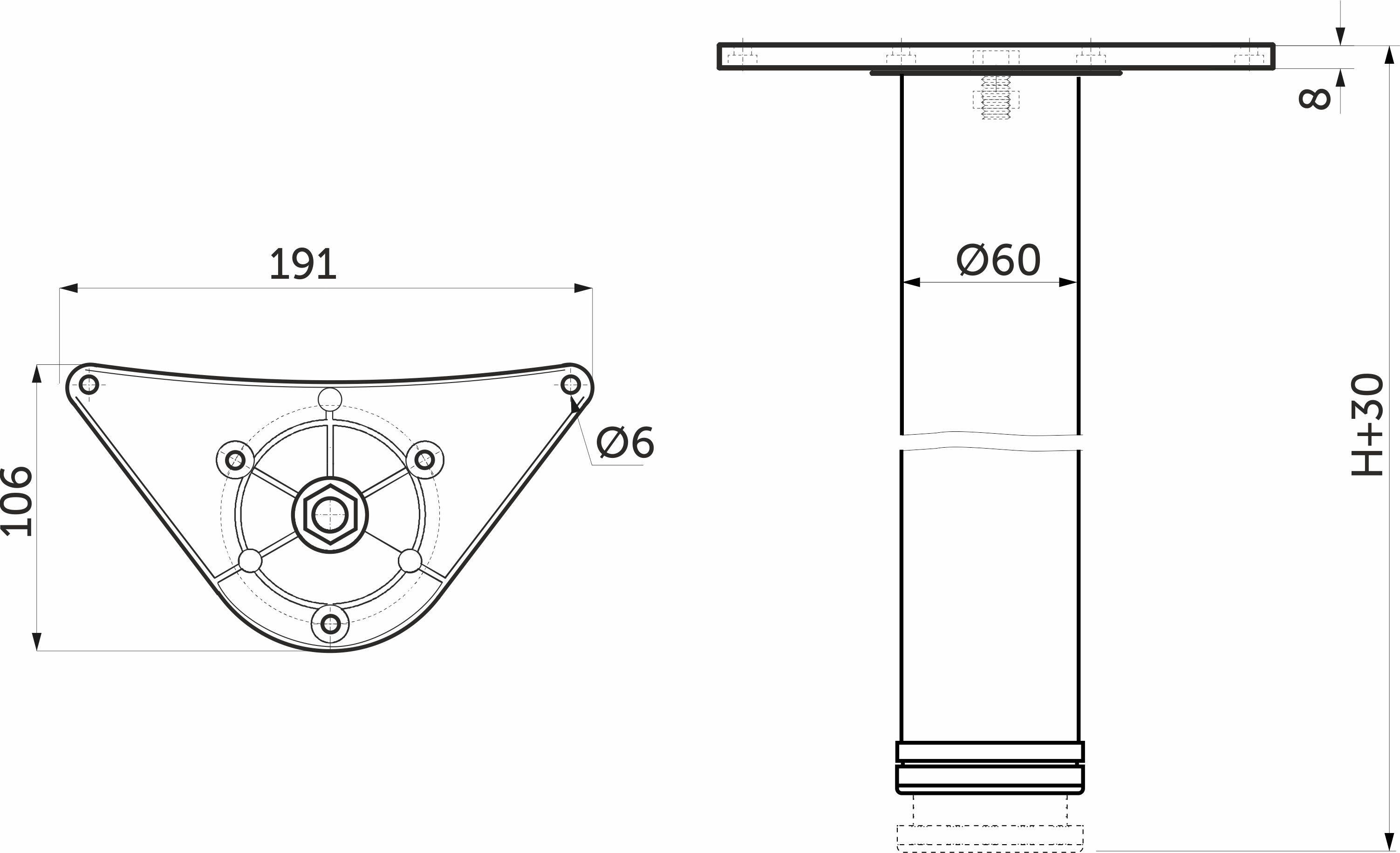 Опора металлическая для столов. Толщина стали опоры - 0,7 мм. Рекомендованная вертикальная статическая нагрузка на 4 опоры - 240кг. Крепление "косынка".