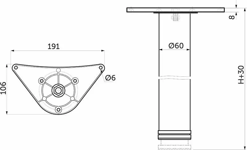 Опора металлическая для столов. Толщина стали опоры - 0,7 мм. Рекомендованная вертикальная статическая нагрузка на 4 опоры - 240кг. Крепление "косынка".