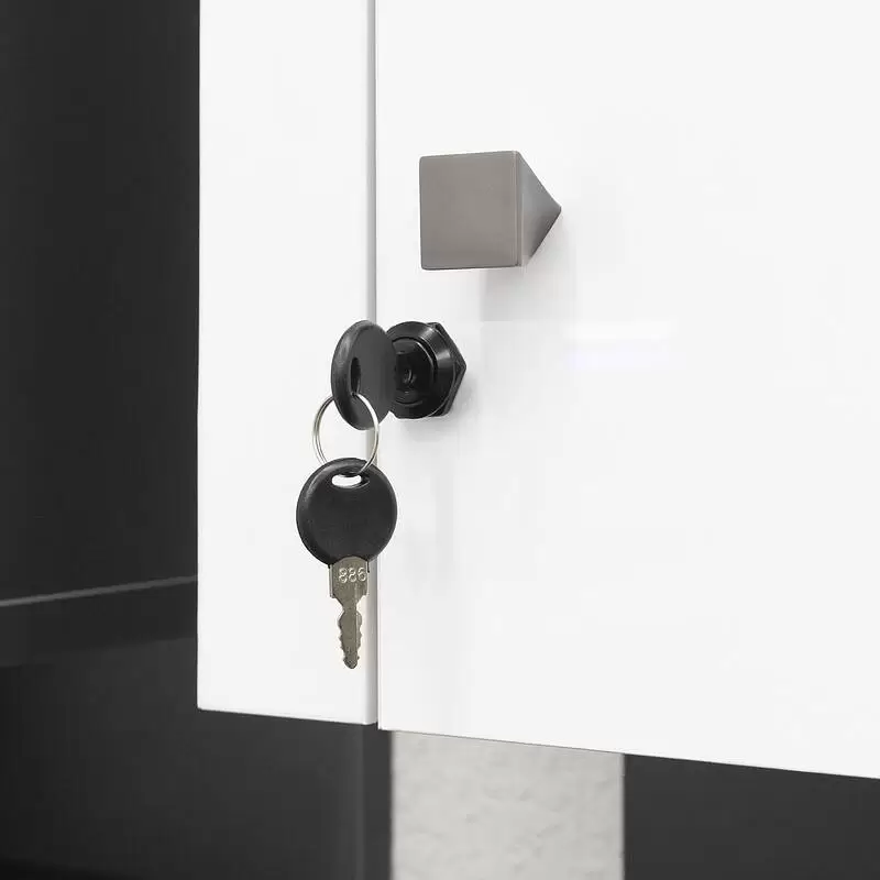 Замок (удерживающий механизм) мебельный, врезной. Обычно используется для почтовых ящиков, металлических шкафов, тумб, сумочниц, выдвижных ящиков или других подобных конструкций.