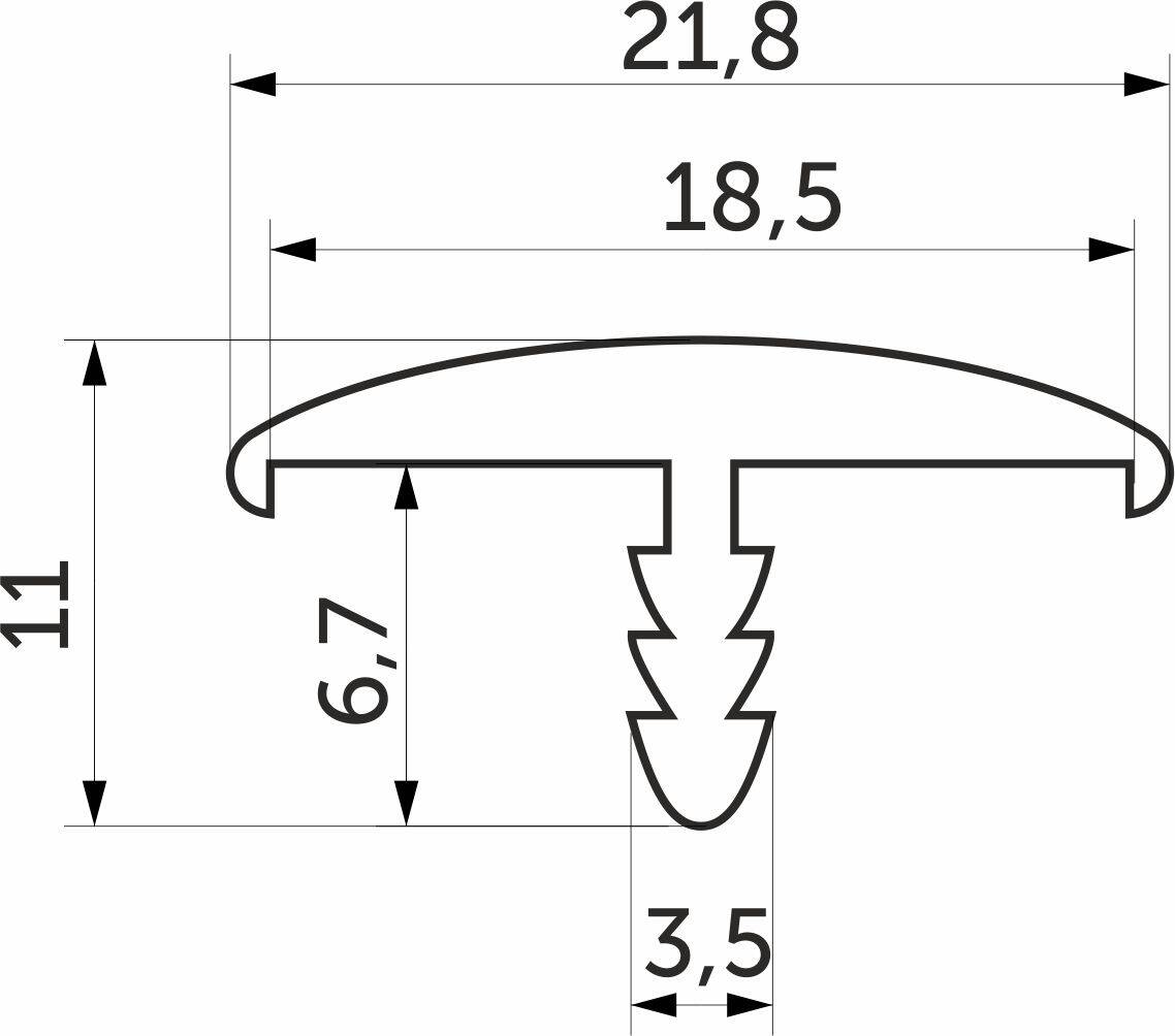 Материал: ПВХ. Для обрамления торцов ДСП, врезной. L= 50 м.п. Для врезного мебельного канта характерно Т-образное поперечное сечение, он врезается в боковой срез мебели. Конструкция отличается наличием специальной ножки, которая забивается в слой ДСП – она сравнительно легко заходит в толщу панели, но при этом благодаря направленным насечкам не теряет сцепления с плитой. Мебельный Т-профиль выполняет защитные функции столешницы или других краев плиты от различного рода повреждений и попадания влаги.