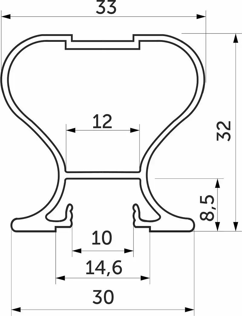 Данный профиль является как декоративным, так и функциональным элементом, защищает торцы дверного полотна от соприкосновения с боковыми стенками шкафа и дополнительно фиксирует ЛДСП, зеркало, стекло, другие декоративные элементы. Закрытый профиль может использоваться в гардеробных комнатах, а также при монтаже межкомнатных перегородок. Он имеет двухсторонних захват, ручки располагаются и с одной, и с другой стороны.
