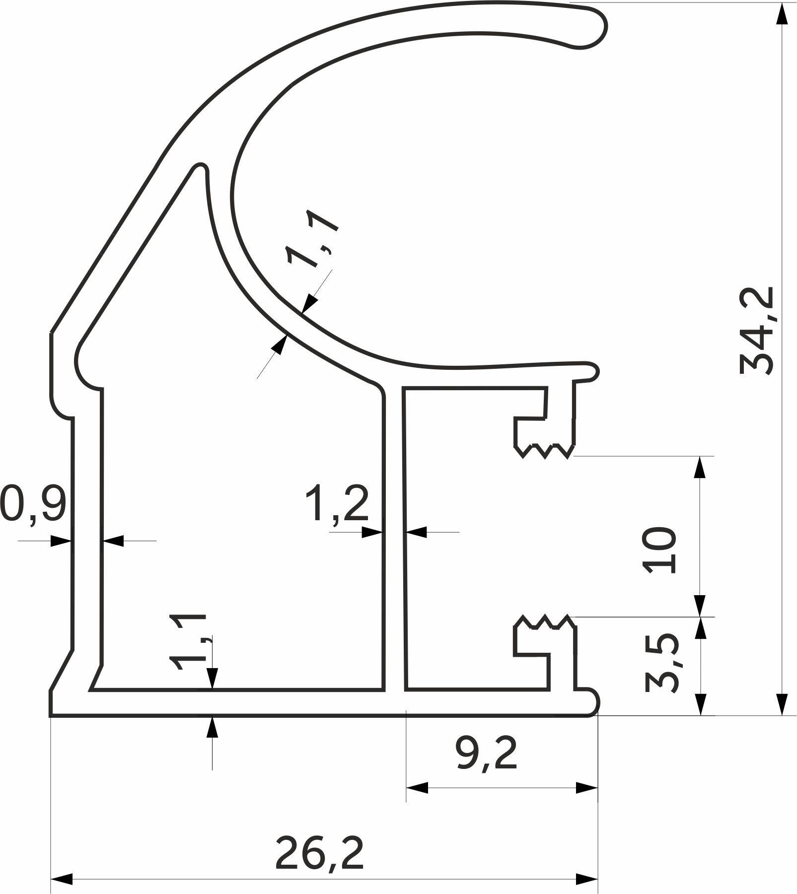 Данный профиль является как декоративным, так и функциональным элементом, защищает торцы дверного полотна от соприкосновения с боковыми стенками шкафа и дополнительно фиксирует ЛДСП, зеркало, стекло, другие декоративные элементы. Имеет только односторонний захват.