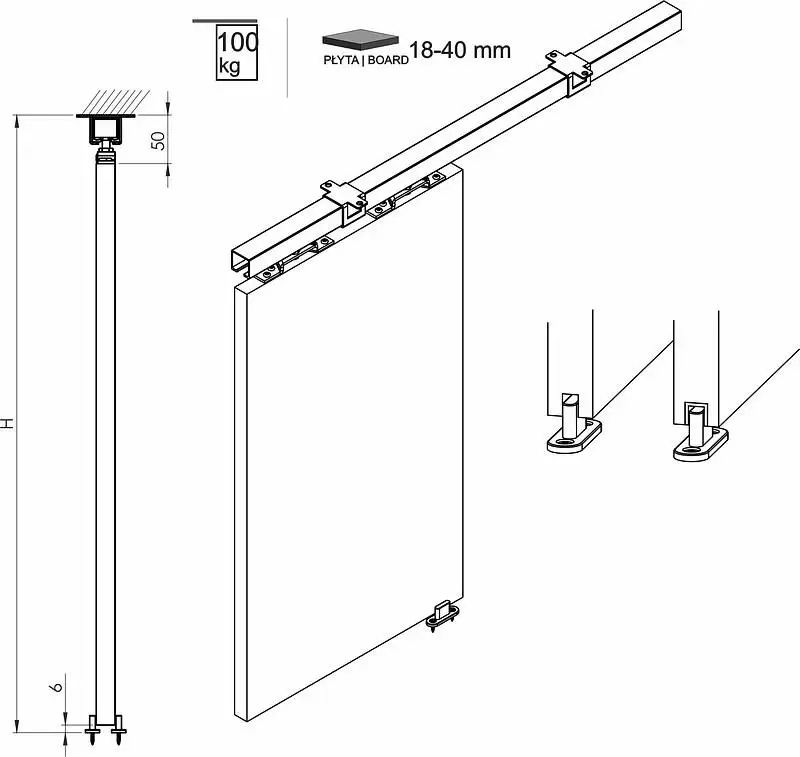 Возможность монтировать направляющую и декоративную планку как на стену, так и под потолок. Опционально каждая раздвижная дверь может быть укомплектована системой плавного закрывания.