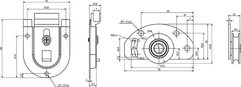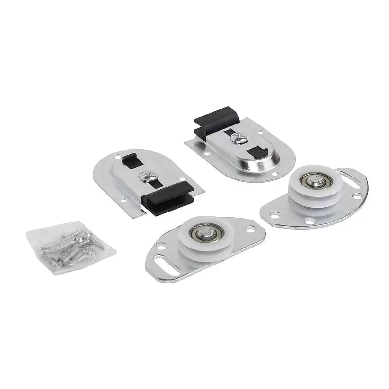 Простая раздвижная система с подшипником. Для полотна 10-42 мм, максимальная нагрузка на комплект 50 кг. Очень простая, недорогая и надежная система раздвижных дверей. Направляющая шина сверху и снизу применяется одинаковая.