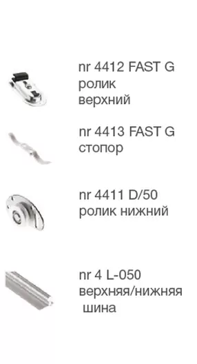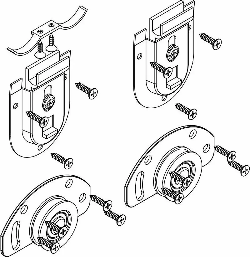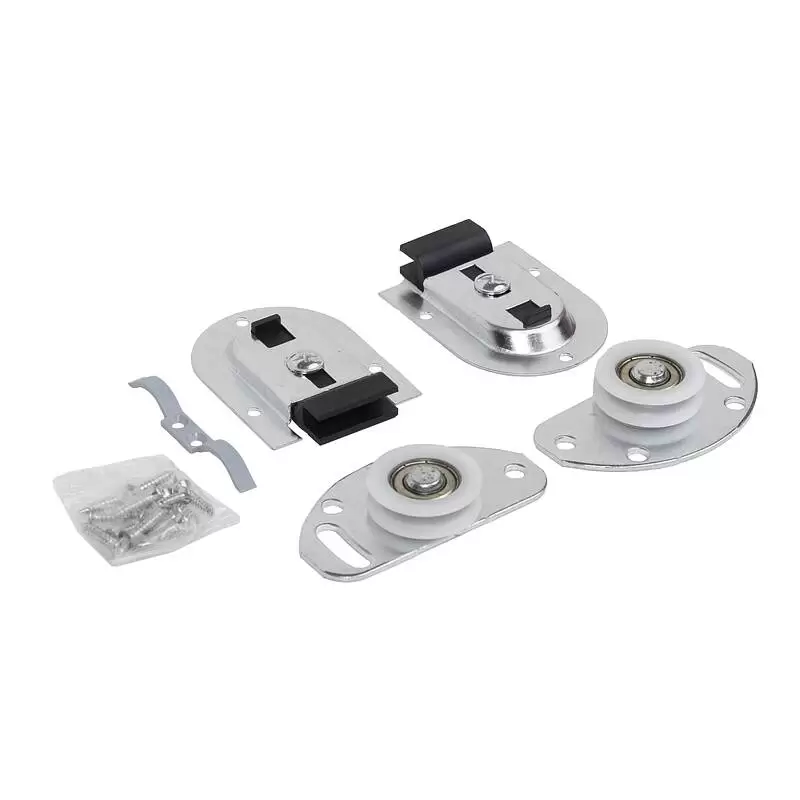 Простая раздвижная система с подшипником. Для полотна 10-42 мм, максимальная нагрузка на комплект 50 кг. Очень простая, недорогая и надежная система раздвижных дверей. Направляющая шина сверху и снизу применяется одинаковая.