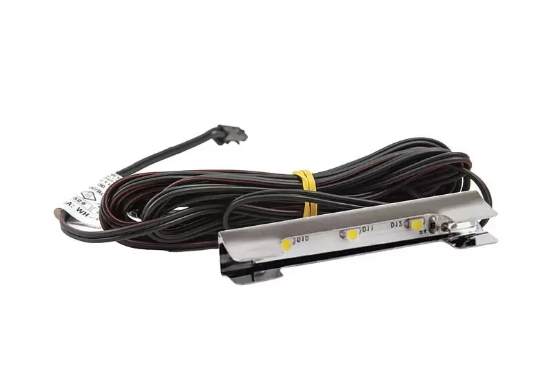 К стеклянным полкам, 3 диода, 12В, 0,25Вт, IP20, металлический, теплый белый 3000К, шнур 2м.