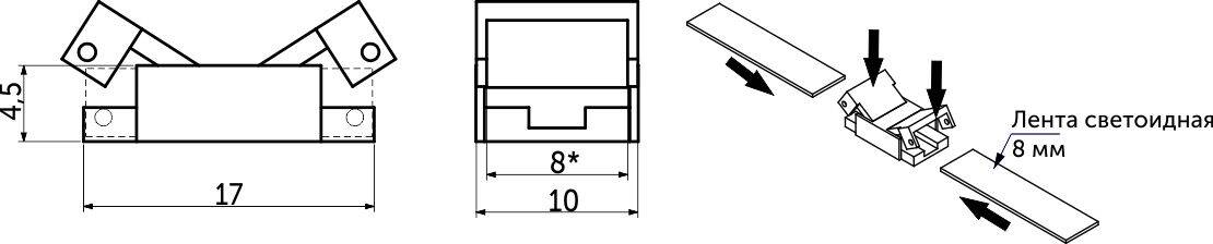 Соединитель прямой AKS для светодиодных лент шириной 8mm, без провода. ВНИМАНИЕ! Не использовать для соединения двух кусков ленты 82448 или 75081.Подробная информация о товаре по ссылке