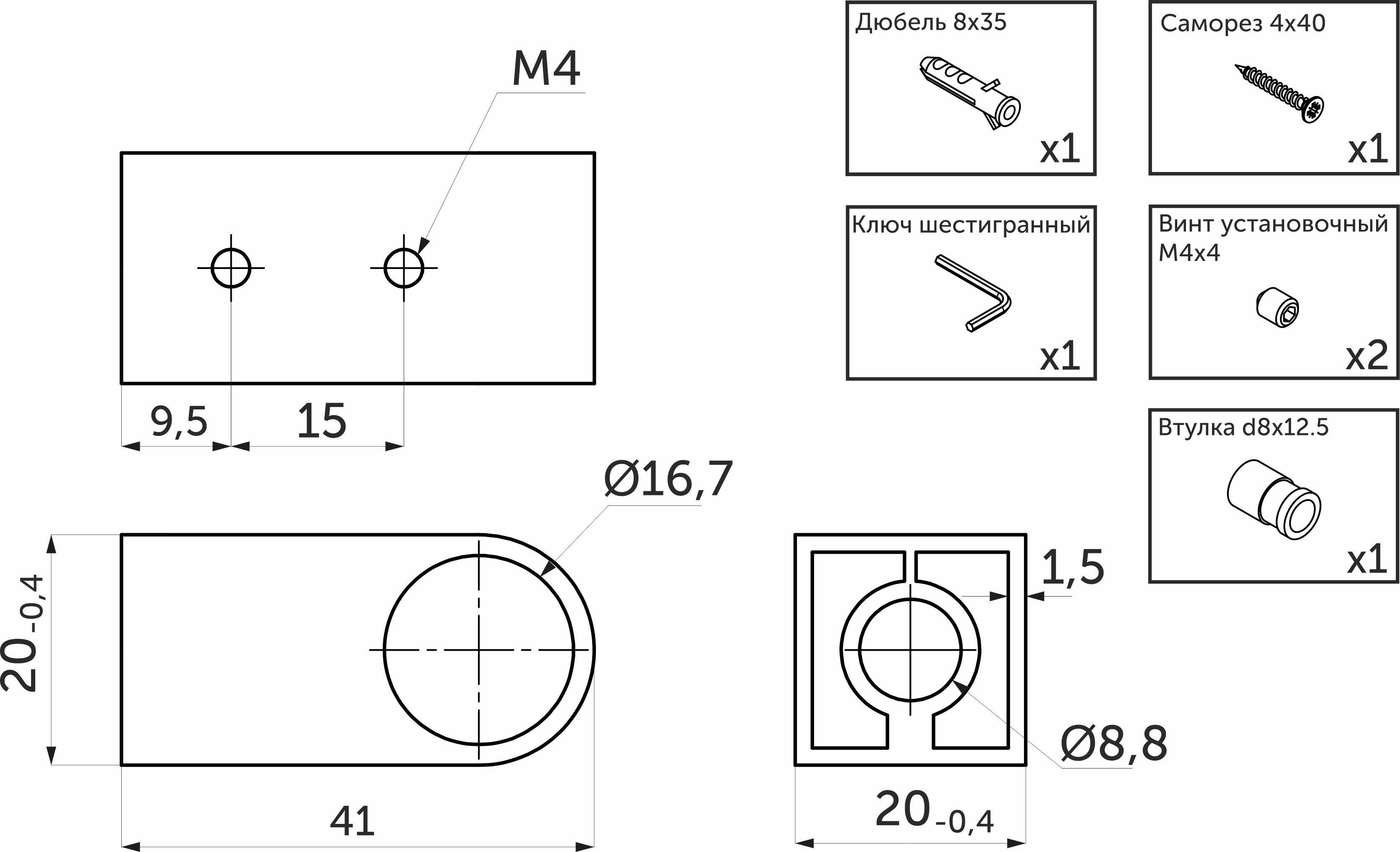 Используется для фиксации трубы d16 к стене либо другой поверхности. В дополнение необходимо приобрести заглушки