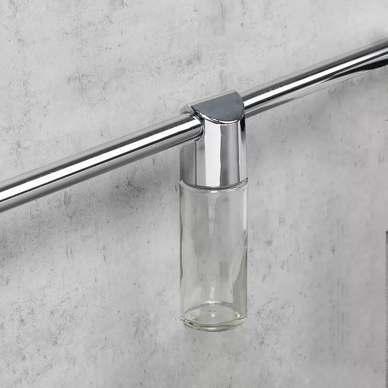 Удобная баночка из стекла для хранения специй. С помощью специальной крышечки с зацепом можно подвесить на рейлинговую трубу. Диаметр подвески 40 мм, высота 140 мм
