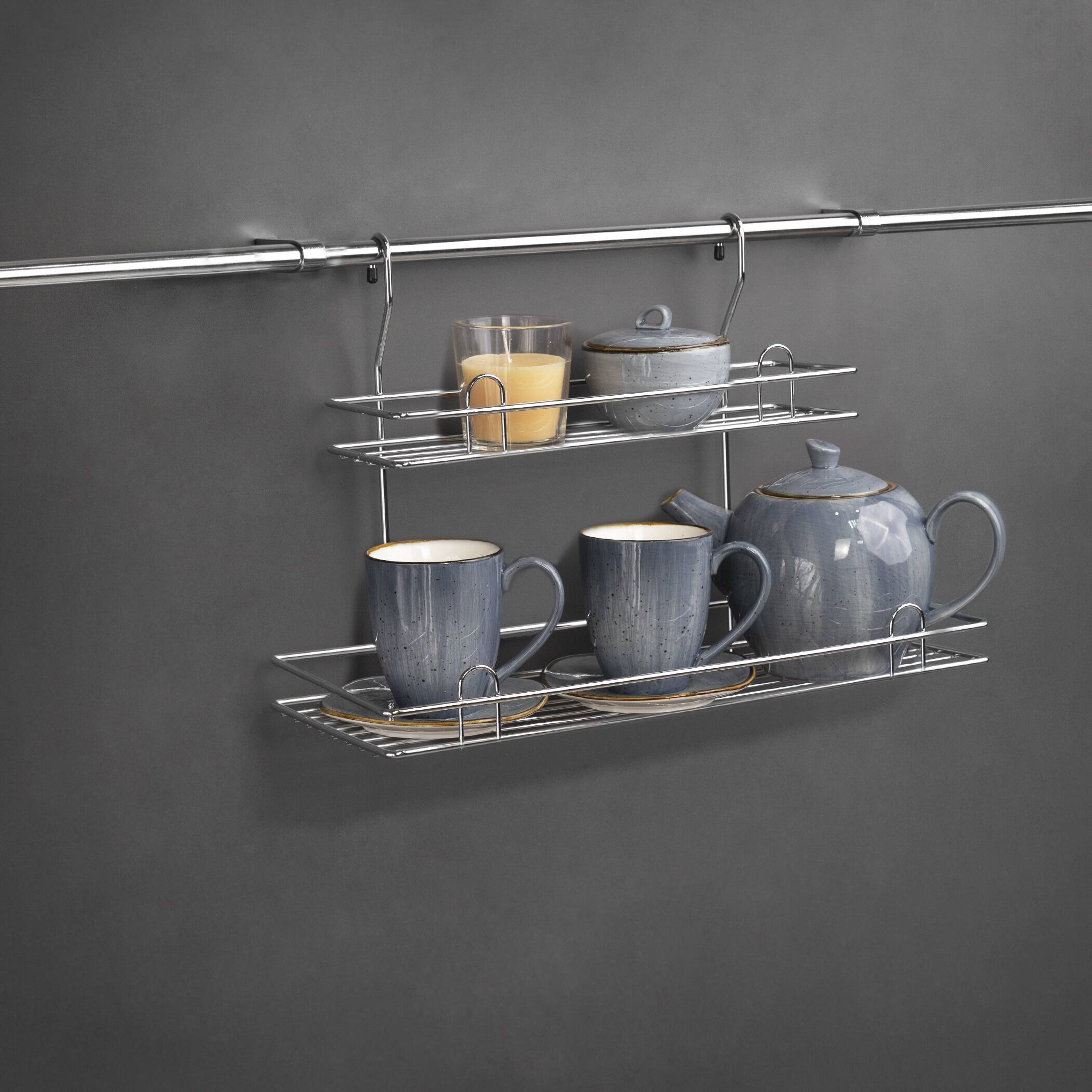 Корзина на рейлинг предназначена для удобного хранения баночек со специями и прочих мелких предметов на кухне. В дополнение необходимо приобрести трубу рейлинговую d16, а также держатели и заглушки для монтажа.