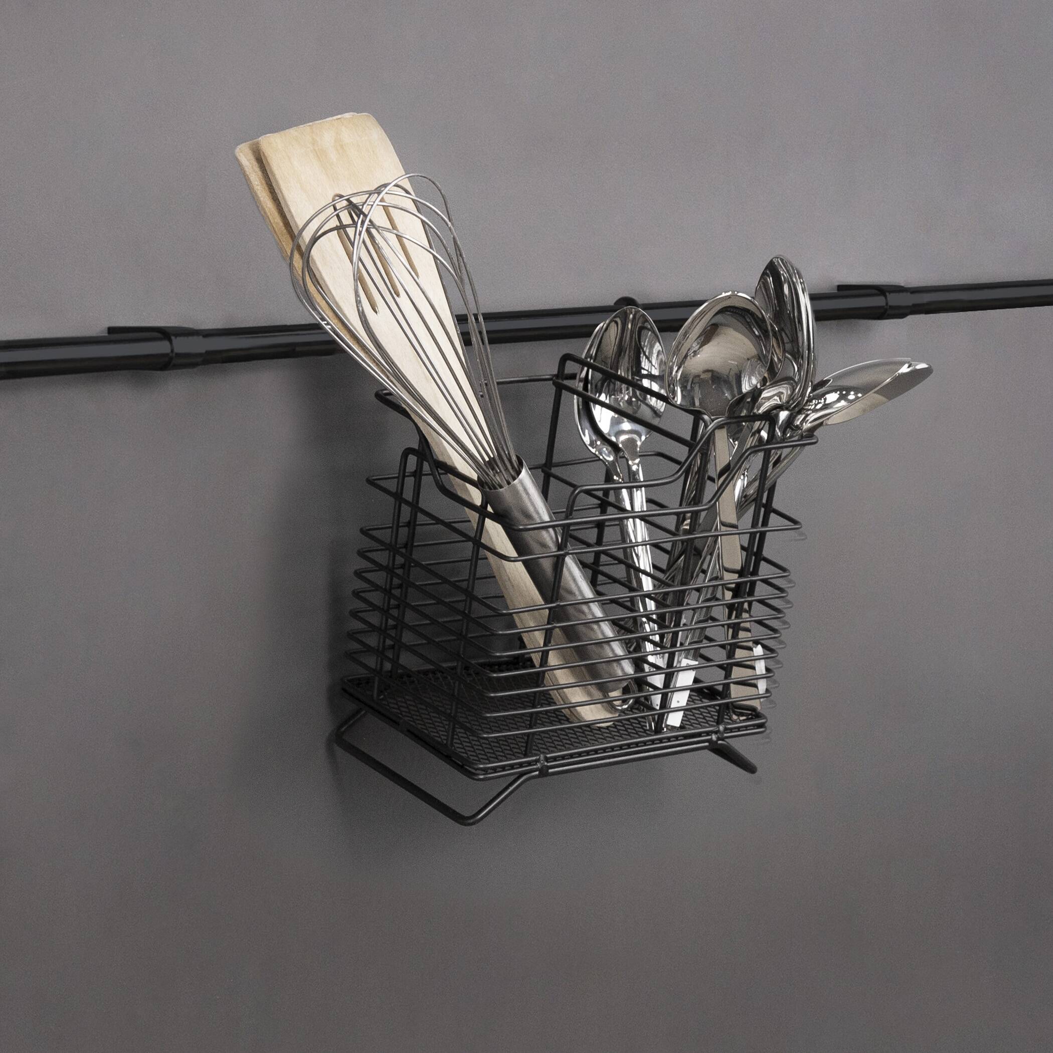 Корзина на рейлинг предназначена для размещения столовых приборов в вертикальном положении. Может размещаться на рейлинговой трубе, а также на поверхности столешницы.