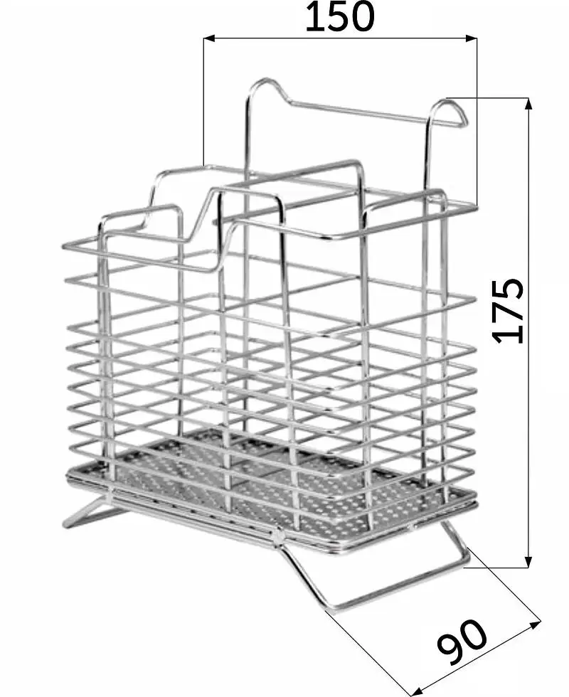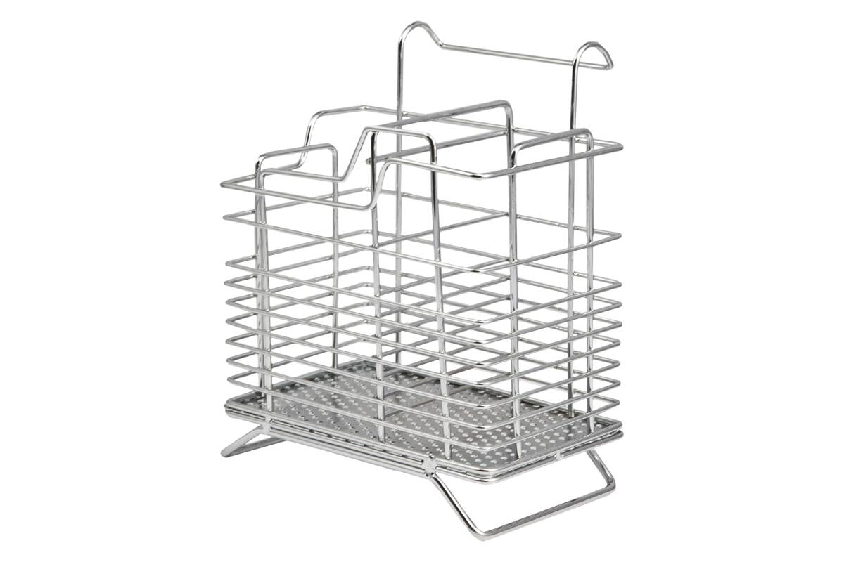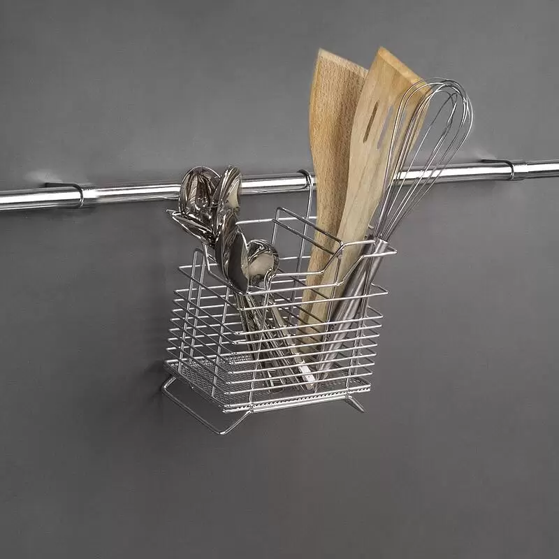 Корзина на рейлинг предназначена для размещения столовых приборов в вертикальном положении. Может размещаться на рейлинговой трубе, а также на поверхности столешницы.