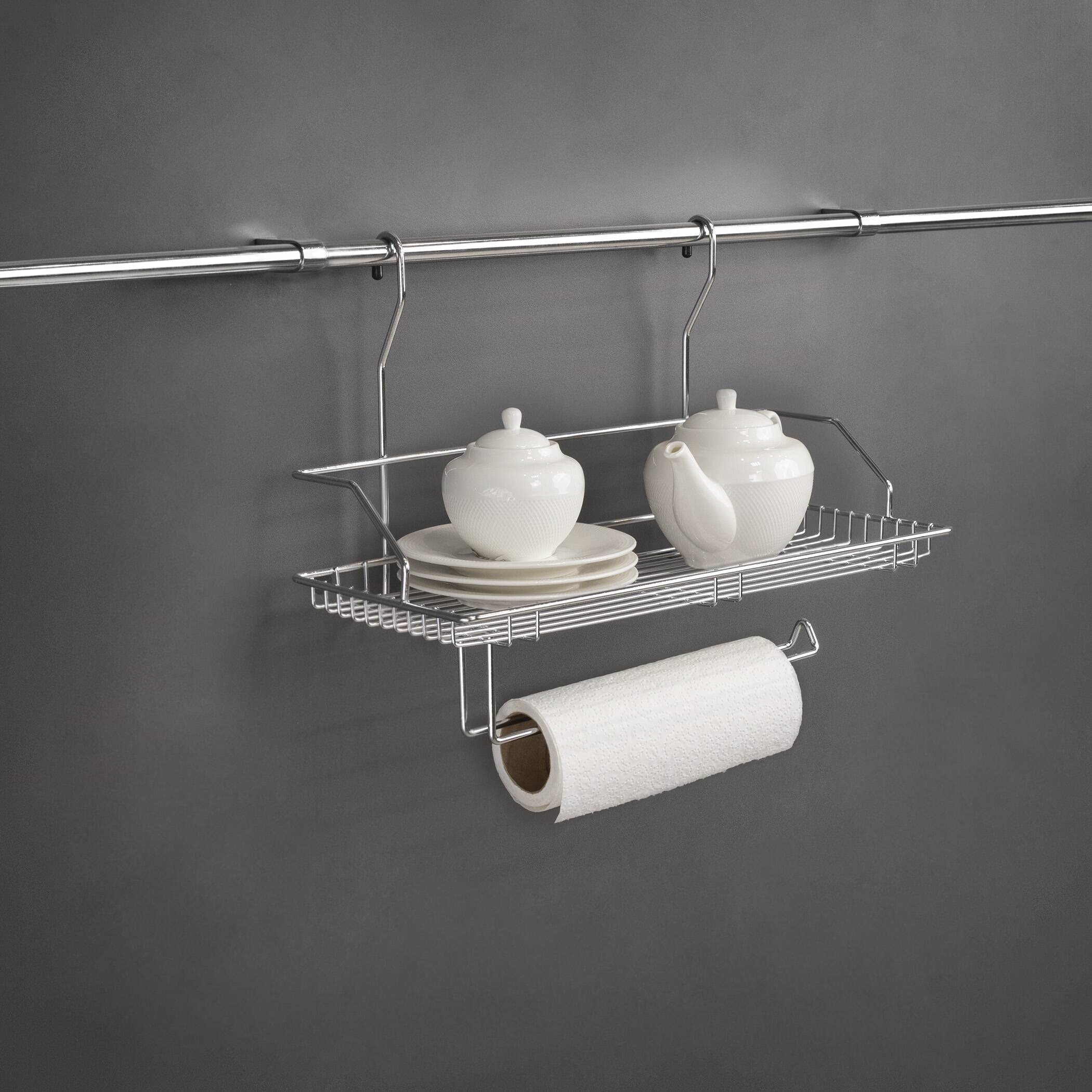 Корзина на рейлинг предназначена для удобного хранения баночек со специями и прочих мелких предметов на кухне. Также в корзине есть снизу держатель для бумажных полотенец. В дополнение необходимо приобрести трубу рейлинговую d16, а также держатели и заглушки для монтажа.