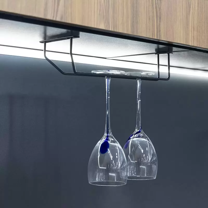 Подвеска крепится саморезами на горизонтальную поверхность, на прутьях размещаются бокалы (ножками вверх)