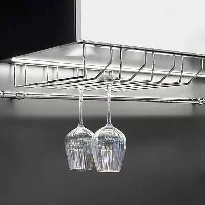 Подвеска крепится саморезами на горизонтальную поверхность, на прутьях размещаются бокалы (ножками вверх)