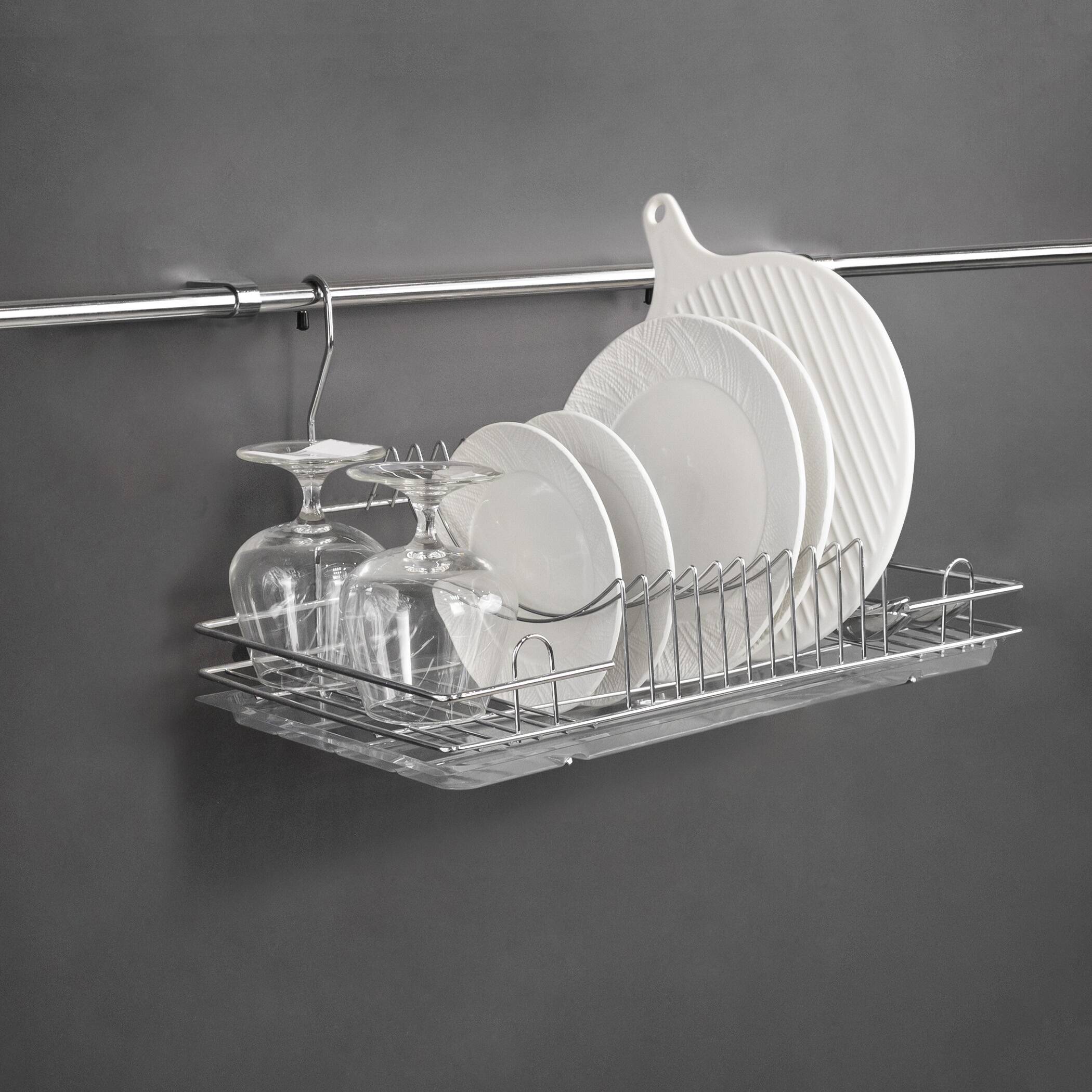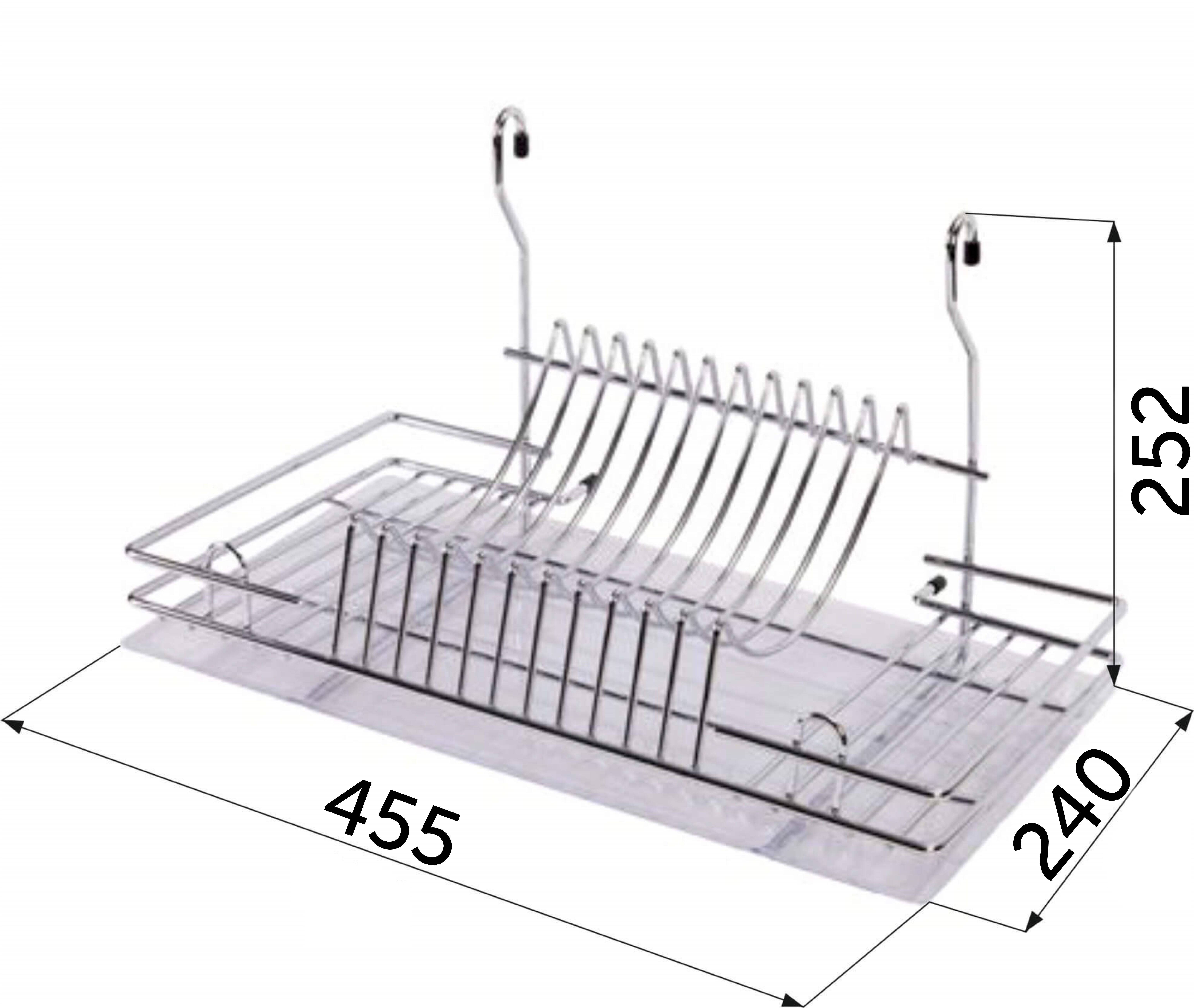 Сушка используется для размещения небольшого количества посуды на рейлинговой трубе. В комплект входит прозрачный поддон. В дополнение необходимо приобрести трубу рейлинговую d16, а также держатели и заглушки для монтажа.